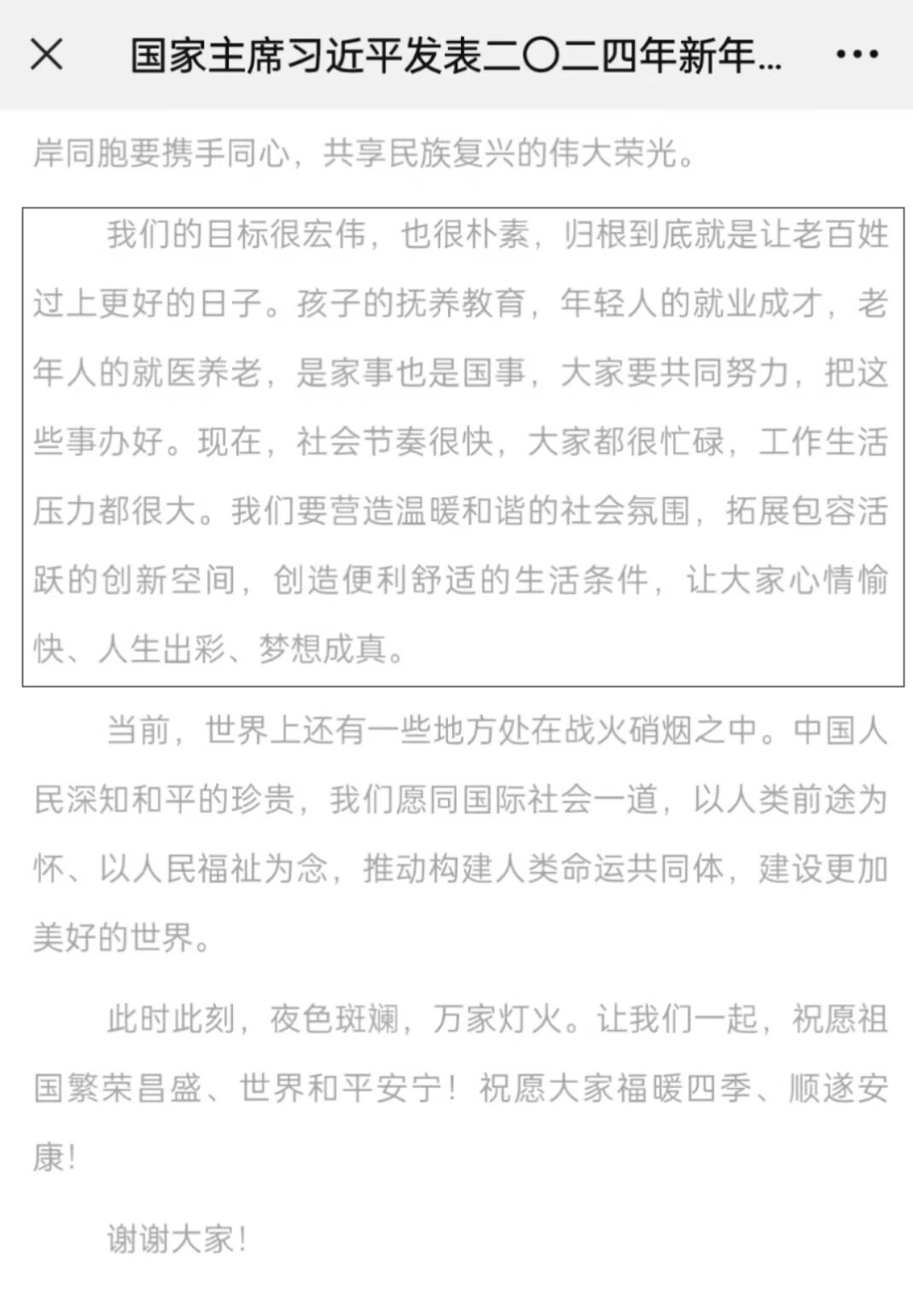 2024年元旦,小編在開車時(shí)間聽到了廣播播放的主席發(fā)的新年賀詞,說實(shí)話聽了以后,尤其是主席講到我們的目標(biāo)的時(shí)候,小編的內(nèi)心真的好激動(dòng)呀。調(diào)整了好幾天,還是壓制不住的激動(dòng)的心情,想要跟大家分享心得。