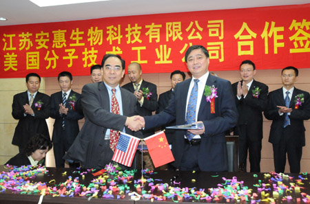 2008年6月17日,安惠公司和美國分子技術工業(yè)有限公司簽約,成立南通中美健康產業(yè)創(chuàng)新研究有限公司。