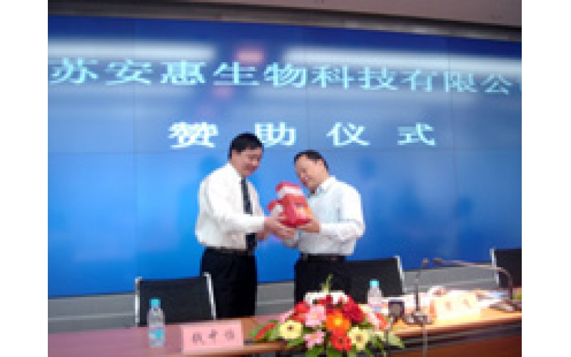 2004年9月24日,陳惠董事長向南通市副市長宋飛捐贈(zèng)的公司產(chǎn)品作為首屆世界大城市帶發(fā)展高層論壇專用保健品。