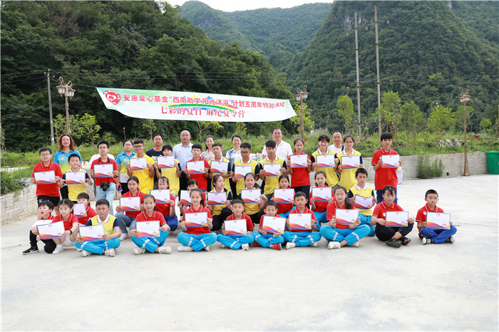 2018年是安惠愛心基金“西南助學(xué) 陽(yáng)光沐浴”計(jì)劃實(shí)施的第五年。每年安惠江海志愿者們都會(huì)來到貴州省獨(dú)山縣麻尾鎮(zhèn)開展愛心助學(xué)活動(dòng),與這里的師生們相聚。7月8-12日,志愿者們帶著6名南通的孩子們?cè)俅翁ど线@片土地,和當(dāng)?shù)貙W(xué)生互動(dòng)、交流、學(xué)習(xí),一起度過一段非常有意義的快樂時(shí)光。安惠公司副董事長(zhǎng)陸漢萍也專程來到麻尾,看望一直牽掛著的學(xué)生們,走訪受資助的學(xué)生,并實(shí)地了解空氣能熱水器的使用情況。